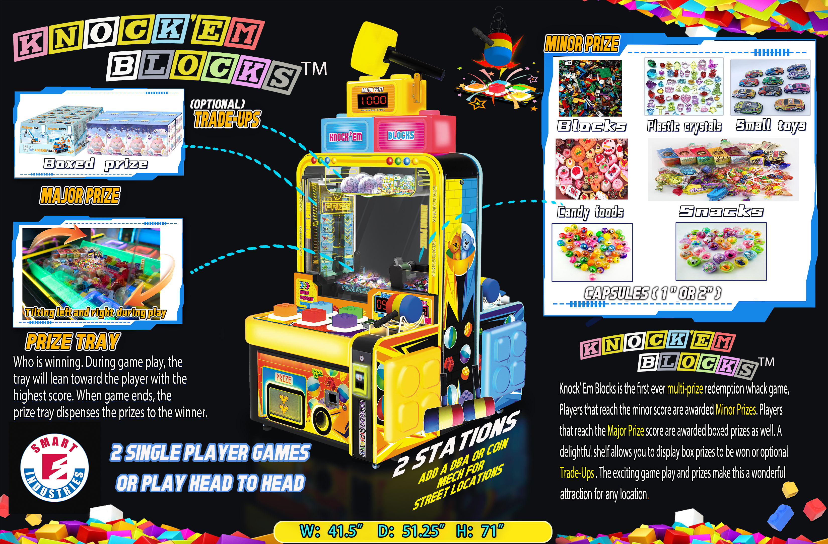 What truly sets Knock'Em Blocks apart are its three prize levels. This feature adds layers of excitement and motivation for players. Whether they're after a small token or aiming for a top-tier prize, the thrill of winning is palpable. This diversity in prize offerings makes it a versatile choice for operators and a delightful experience for guests, ensuring that everyone leaves with a smile, whether they win or lose.