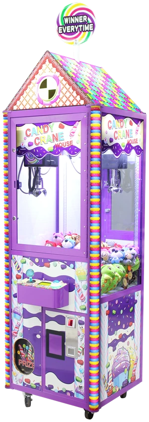 Kids will be drawn from all around to this bright, attractive crane. From the candy rope lights and light-up roof to the big lollipop on top, this crane will keep them coming back over and over again. Perfect as a "winner every time" crane. Fits through standard doorways with roof attached, and fits under standard 8’ ceilings with lollipop topper added.