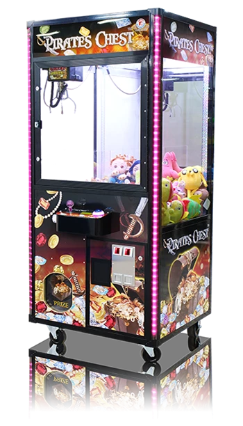 The Pirates Chest XL crane is truly a game-changer in the world of crane machines. The vibrant pirates treasures theme decal package is eye-catching and sure to attract customers from afar. The 180 degree product view is a unique feature that sets this crane apart from the rest. The lighting and sounds only add to the overall excitement and appeal of this machine. With options for Candy Crane, plush crane, bean bag crane, or Jewelry Crane, the Pirates Chest XL is versatile and perfect for a variety of establishments. The compact dimensions of the 31" and 41" models make them easy to maneuver through standard doorways, adding to their convenience and practicality. Overall, the Pirates Chest XL line is a fantastic choice for anyone looking to enter the crane market or upgrade their current machine. Its enhanced features and functionality make it a top contender in the industry. Don't miss out on the opportunity to add this impressive crane to your game line-up!